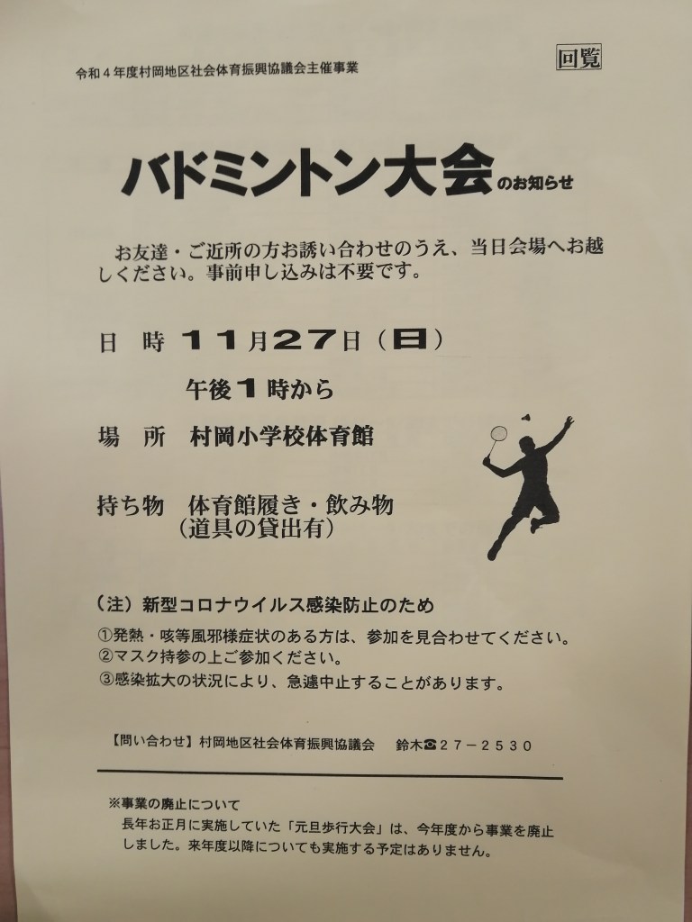 バドミントン大会 村岡小学校 2022/11/27 13時〜